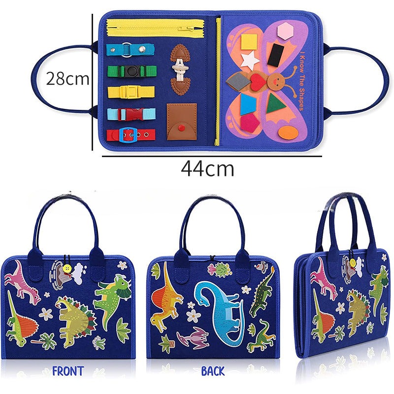 We utilize safe and high quality felt materials in combination with charming dinosaur designs to create this busy book. It is strong and durable enough to withstand the stress of normal play.